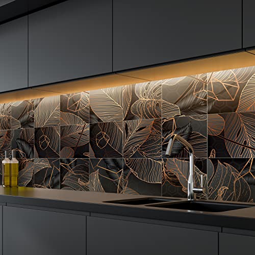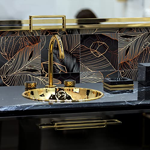 Specification: Alwayspon 12 stuks, 20 cm x 20 cm, vinyl vloer/wandsticker voor transfer, slipvaste sticker voor keuken badkamer, zelfklevend, zelfklevende PVC-sticker voor tegels, zwart en goudkleurig marmereffect