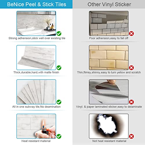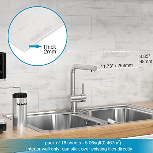 Specification: BeNice Zelfklevende tegels, marmer, stickers, spatwand voor keuken en badkamer, afzonderlijke tegels, groot, 16 stuks, roestgrijs