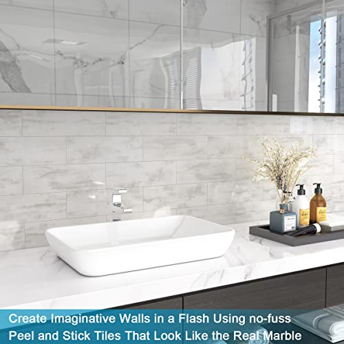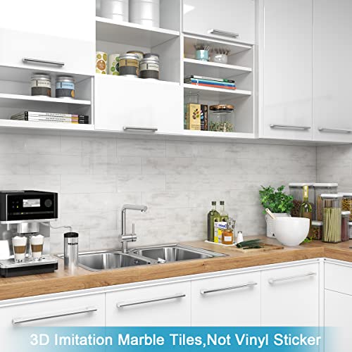 Gemakkelijke realistische 3D doe-het-zelf-tegels: In marmer-look, zodat ze eruitzien als écht marmer, maar erg licht in gewicht zijn en gemakkelijk kunnen worden aangebracht. Geen gebroken randjes, gewoon de folie eraf trekken en vastplakken. Gemakkelijk op maat te snijden met een stanleymes of schaar.