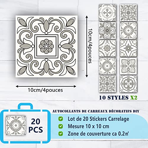 Doe-het-zelfdecoratie: 20 stuks tegelstickers zijn inbegrepen. Er zijn drie maten om uit te kiezen: 10 x 10, 15 x 15, 20 x 20 cm. Retrostijl en mooi designpatroon, zodat je het oppervlak naar wens kunt aanpassen en vormgeven.