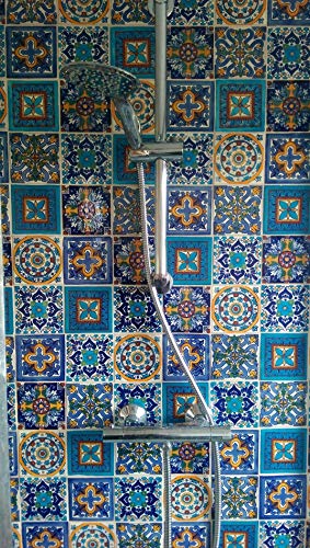 Specification: Cerames Mexicaanse tegels Armando – 30 Mexicaanse tegels 10,5 x 10,5 cm Talavera badkamer- en keukentegels decoratie voor badkamer, douche, trappen, keukenachterwand