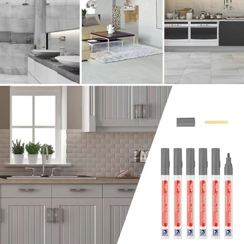 【Eenvoudig te bedienen grijs】Eenvoudig ontwerp zonder vuile handen, 6 stuks voegenkleurtegels, elk met 1 reservepunt, hebben genoeg capaciteit om je te helpen je keuken of badkamertegels te verfraaien.