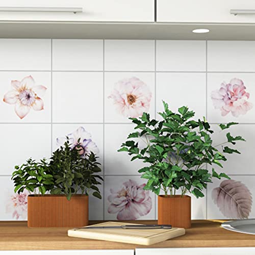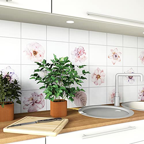 Specification: FoLIESEN – Witte tegelstickers met aquarelbloemen voor badkamer. keuken. badkamer – tegelfolie zelfklevend – 9 zelfklevende tegels. 15 x 20 cm – wit glanzend