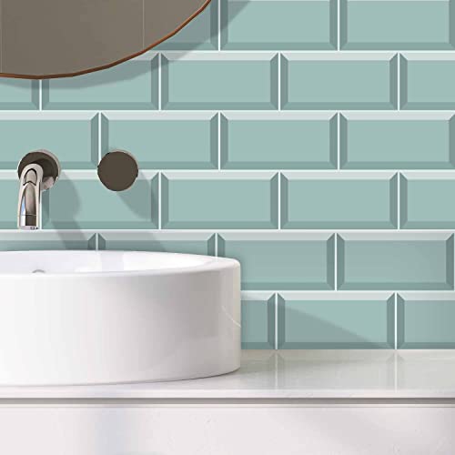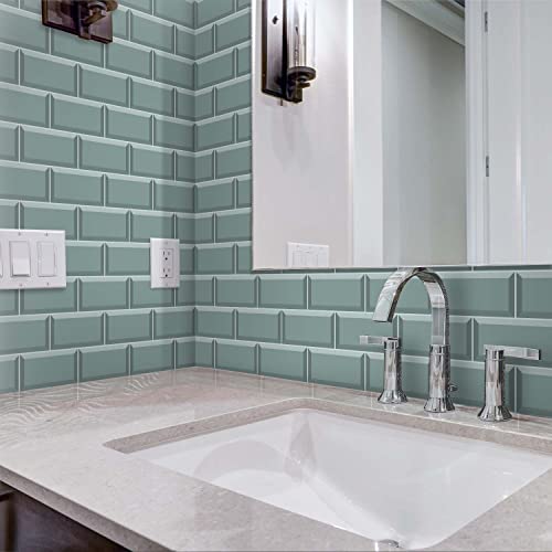 Specification: Neukids 27 vellen saliegroen tegelstickers, plaktegels, zelfklevende tegels, badkamer, keukenachterwand, wasruimte, wastafel, camper, tuinmuren, tegeldecoratie