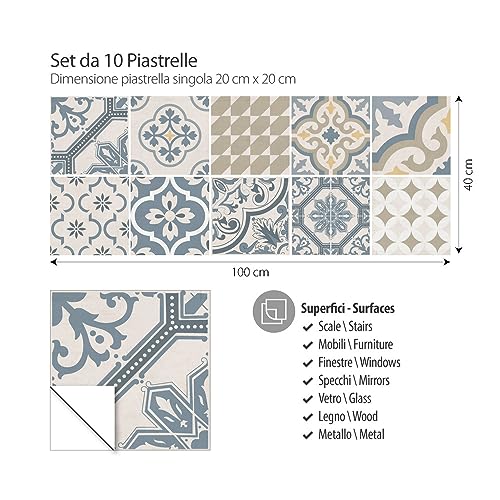 RE-COVERTILES – Tegelstickers Badkamer en Keuken 10 Pcs 20×20 cm – PS00086 Wanddecoratie van PVC Waterbestendig Tegels Mozaïek Cementtegels in Azulejos-stijl