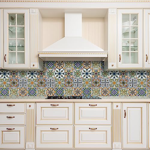 RE-COVERTILES – Tegelstickers Badkamer en Keuken 24 Pcs 10×10 cm – PS00078 Wanddecoratie van PVC Waterbestendig Tegels Mozaïek Cementtegels in Azulejos-stijl