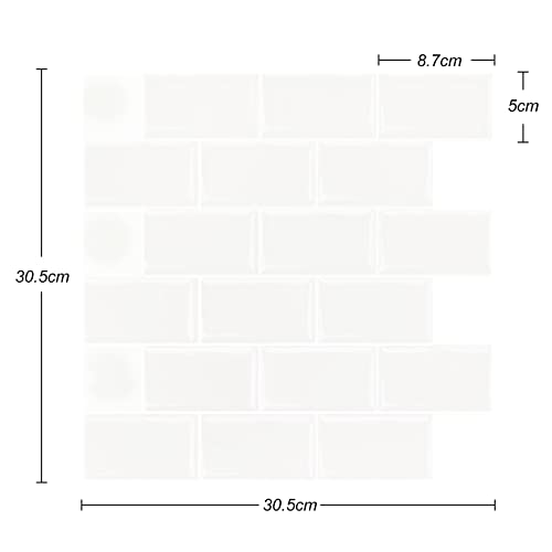 Specification: UISEBRT 10 vellen 3D-tegelstickers, badkamer, keuken, zelfklevende tegels, waterdichte tegelstickers, tegelfolie, wandtegels, plakfolie, 30 x 30 cm, type D, wit