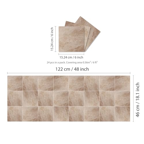 Specification: WALPLUS Tegelstickers, zelfklevend, tegels, keuken, 15 x 15 cm, muurstickers, badkamer, zelfklevend, oliebestendig, Topaz, bruin, marmer, 24 stuks