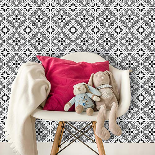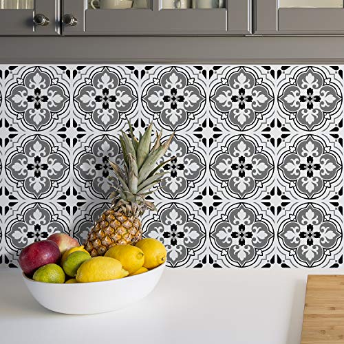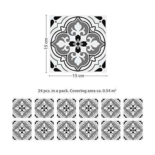 Walplus Tegelstickers Zelfklevende Tegels Schillen En Plakken Vinyl Decoratie Waterdicht Keukenvloer Badkamer Woonkamer Kast Naadloos Antiek Bloemen 24 Stks 15 Cm (6 “) Zwart Grijs