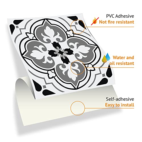 Specification: Walplus Tegelstickers Zelfklevende Tegels Schillen En Plakken Vinyl Decoratie Waterdicht Keukenvloer Badkamer Woonkamer Kast Naadloos Antiek Bloemen 24 Stks 15 Cm (6 “) Zwart Grijs